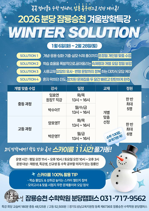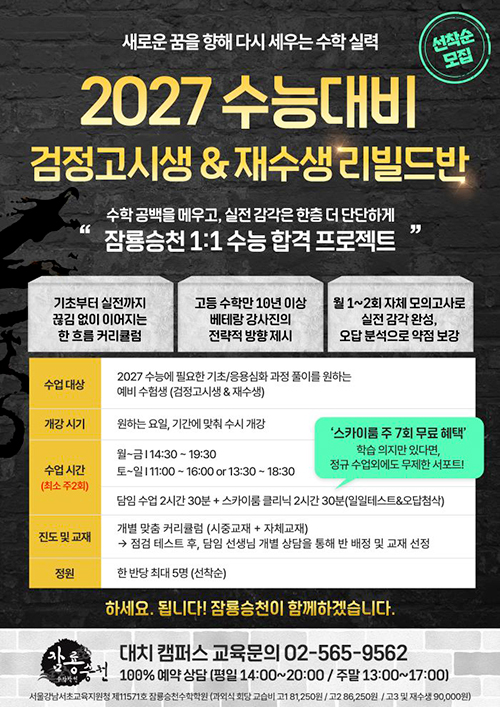 수학성적의 잠재력을 깨고 SKY로 날아오르십시오!”